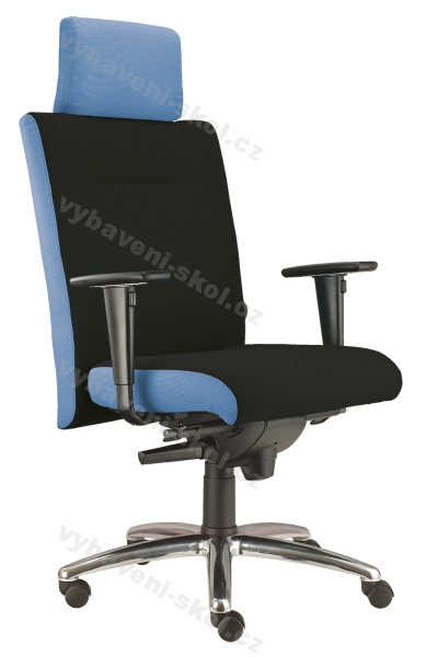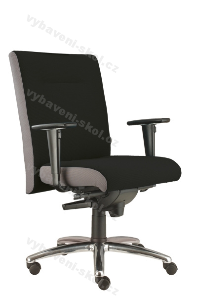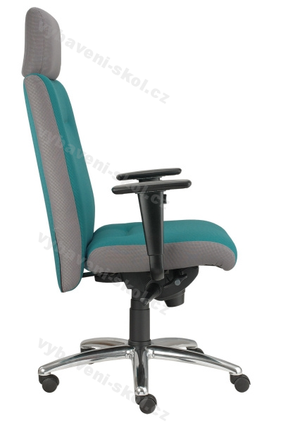Moderní mohutné celo čalouněné kancelářské křeslo. V kombinaci s kvalitní látkou Bondai nebo Phoenix je především určeno pro zátěžové 24h provozy. Křeslo je vybaveno kvalitní synchronní mechanikou s nastavením tuhosti dle váhy uživatele a aretací ve zvolené pozici, hloubkově a výškově stavitelnou bederní opěrou, kvalitním plynovým pístem a lešěným hliníkovým křížem s kolečky 50 mm na koberec a lino. Jako doplněk je vhodná opěra hlavy a 3D područky. Volitelné doplňky.