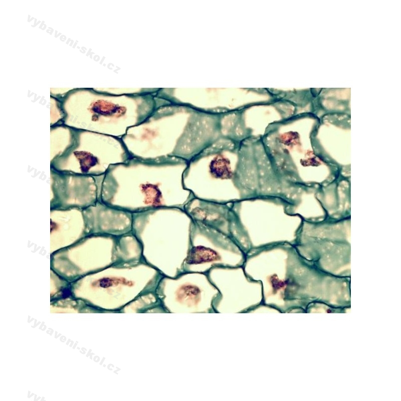 Sada 10 preparátů EUROS. Histologie člověka a savců. Např. příčný řez plícemi králíka, část křídla běláska zelného, ústní ústrojí včely medonosné, příčný řez kořene pryskyřníku, listu lilie, hnědá plíseň, váleč.