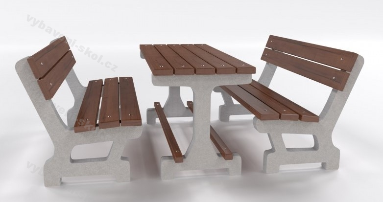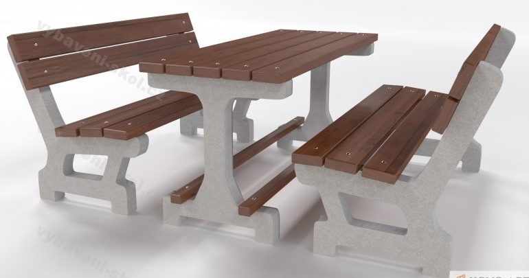Betonový set Golem je složen ze laviček ve dvou variantách laviček a stolu. Sestava vyniká svojí dlouhou životností a odolností proti vandalům. Nohy z betonu, smrkové prkna s lazurovou úpravou v několika dezénech.