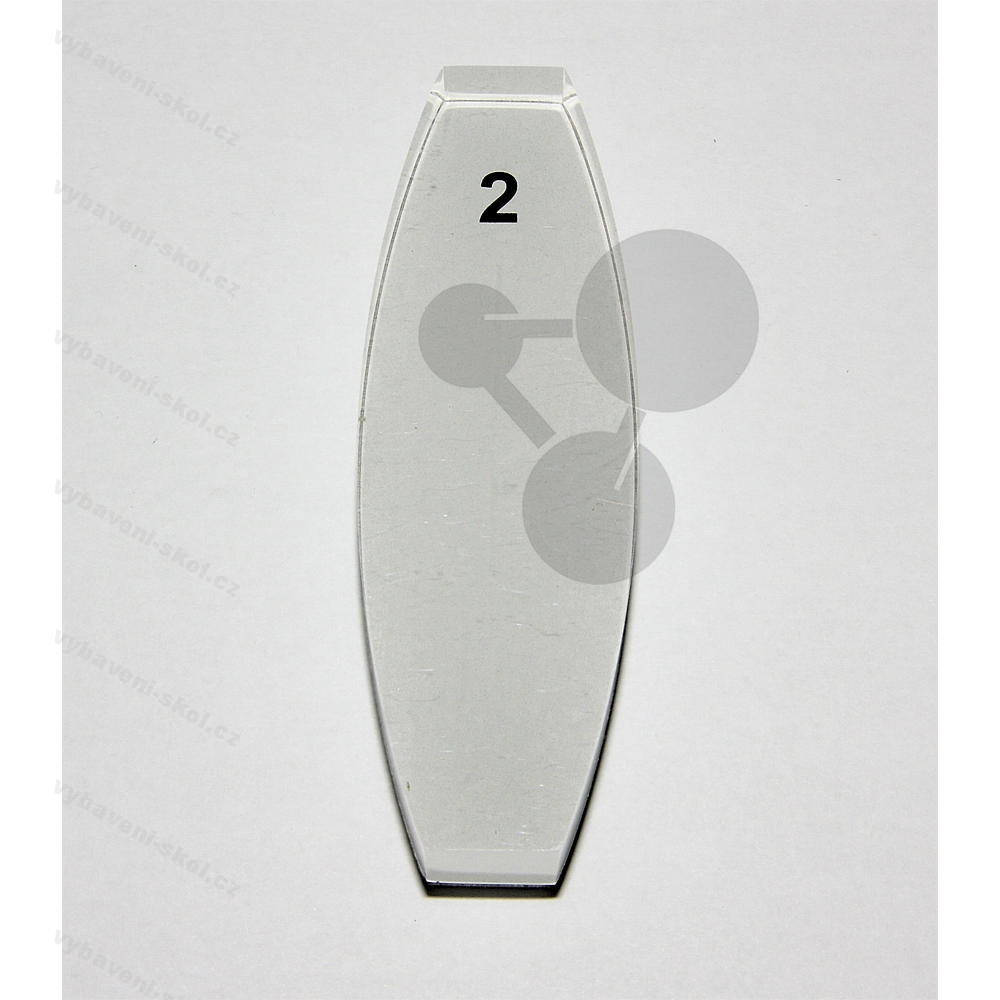Bikonvexní čočka, délka 100, výška 17 mm.
