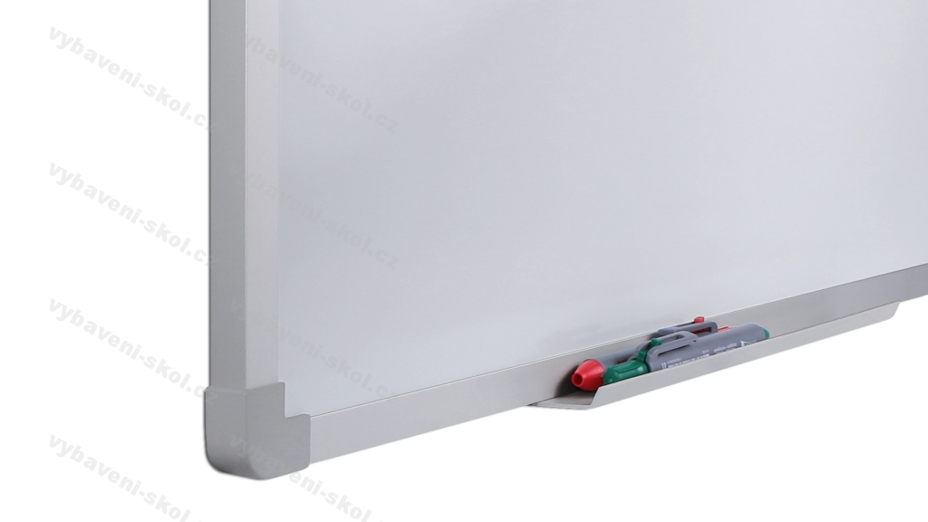 Praktická bílá tabule s emailovým povrchem (email se nanáší na kov při teplotě 250°C) pro méně časté použití. Funkční deska je magnetická, popisovatelná fixem, za sucha stíratelná. Součástí tabule je odkládací lišta pro propisovače. Hliníkový rám s možností výběru barevného provedení a praktické plastové rohy.