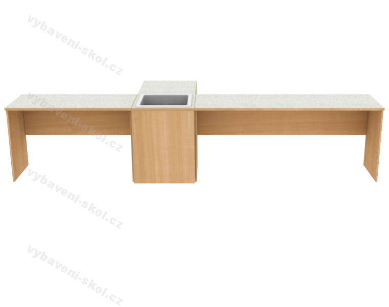 Centrální žákovský stůl je další součástí každé vzdělávací učebny se zaměřením na přírodní vědy. Vytváří středovou část studentského pracovního prostoru. Centrální panel se skládá z odkládací pracovní plochy s možností doplnění o mycí boxy pro snadnou a samostatnou práci studentů. Korpus panelu je zhotovený z odolných oboustranně laminovaných dřevotřískových desek, chráněných hranami ABS na nejvíce namáhaných částech. Pracovní desku tvoří odolný, snadno udržovatelný umakart. Korpus a pracovní deska stolu v několika provedeních viz nabídka níže. Mycí část lze vybavit keramickým dřezem se speciální odtokovou trubkou a různými typy vodovodních baterií.