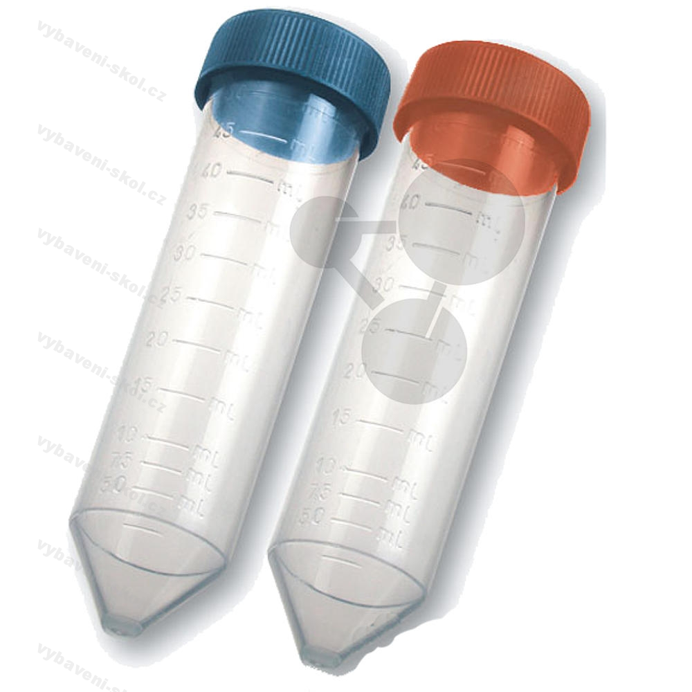 Centrifugační zkumavky s kónickým dnem a šroubovacím uzávěrem, sterilní, se stupnicí, z polypropylenu s víčkem.