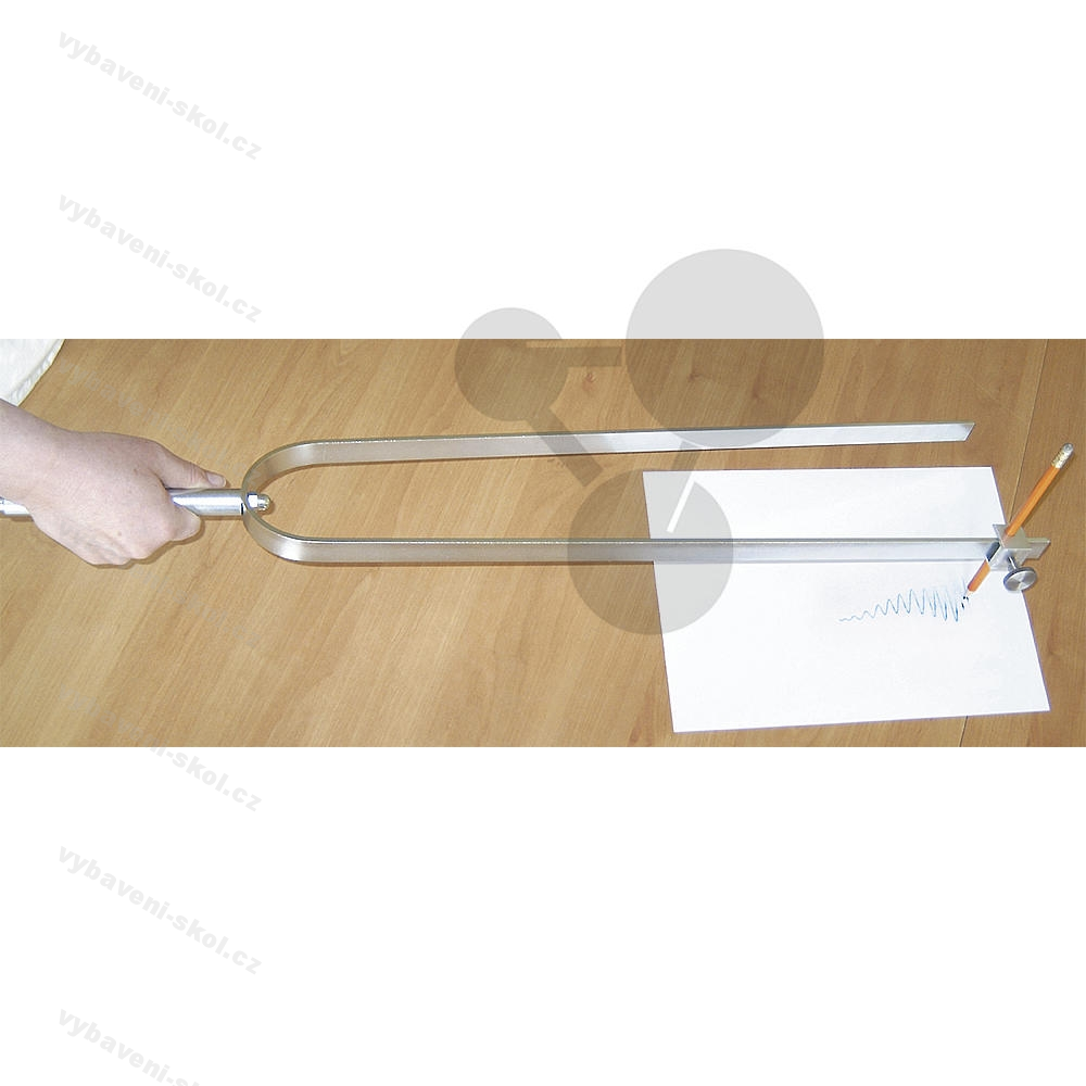 Po připevnění obyčejné tužky lze působivě zviditelnit oscilace na listu papíru. Délka ladičky 750 mm.