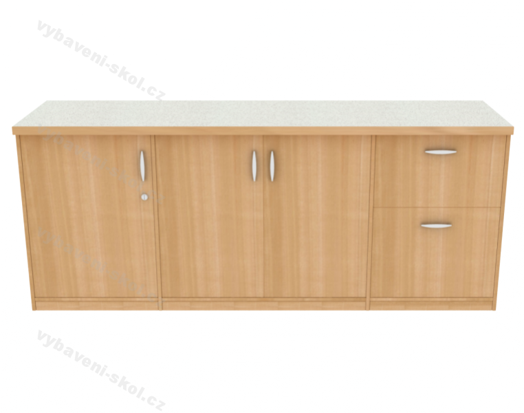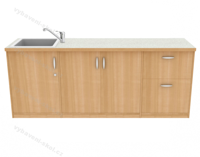 Základní nábytkové a pracovní vybavení odborné vzdělávací učebny fyziky. Hlavní součást učitelského pracoviště tvoří demonstrační stůl pro provádění jednotlivých úkolů, předvádění pokusů, vysvětlení učiva. Stůl se skládá z uzamykatelné skříňky pro elektrickou výbavu (90x60x60cm V x Š x H), doplňkové skříňky (90x100x60cm V x Š x H) a mycího boxu (90x60x60cm V x Š x H), opatřeného zámkem. Celková délka demonstačního stolu 220cm. Rozměry jednotlivých položek lze libovolně měnit dle požadavků.