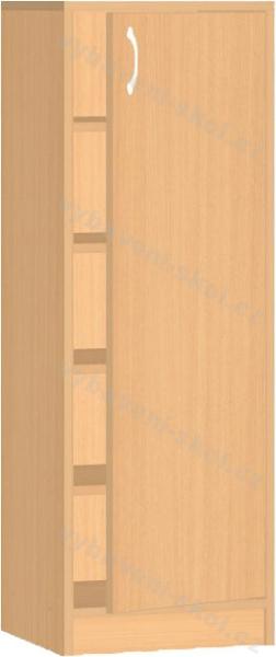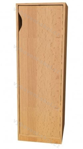 Univerzální dětský nábytek, snadno kombinovatelný. Vysoká drěvěná skříňka s dvířky. Rozměry: 121x40x45cm (V x Š x H).