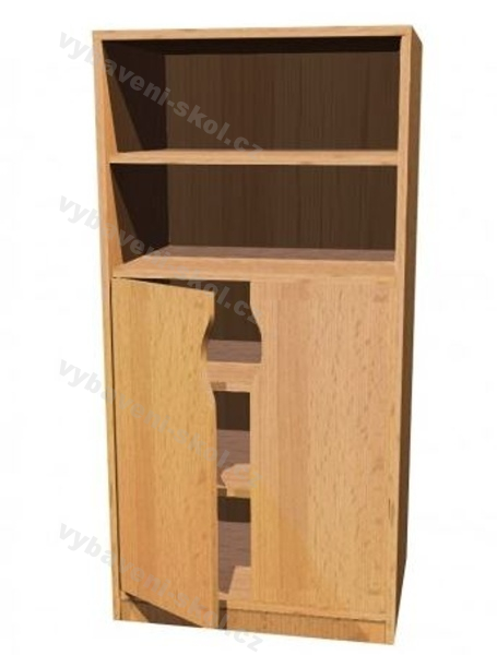 Univerzální dětský nábytek, snadno kombinovatelný. Vysoká dřevěná skříňka s dvířky a policemi. Rozměry: 121x60x45 cm (V x Š x H).