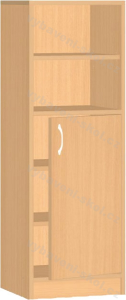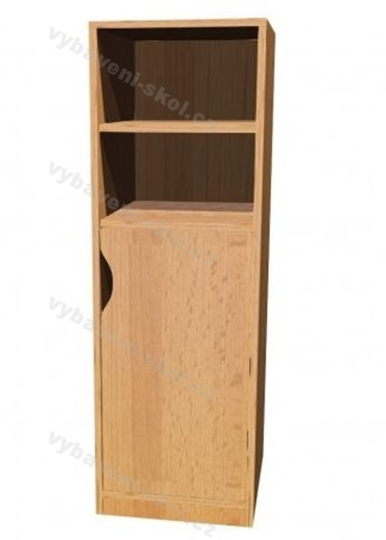Univerzální dětský nábytek, snadno kombinovatelný. Vysoká skříňka s dvířky a policemi. Rozměry: 40x121x45 cm (ŠxVxH).