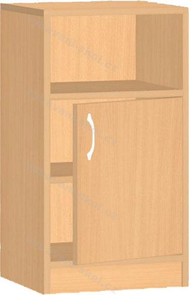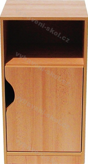 Do nízké skříňky s dvířky mohou ukládat hračky a jiné předměty malé děti, skříňka je tomu výškově přizpůsobena. Korpus skříňky je standardně vyráběn ve dvou dezénech lamino desek o síle 18 mm. Dvířka jsou v několika barevných provedeních lamino desek o síle 18 mm (barevné spektrum v naší nabídce). Všechny namáhané plochy jsou opatřeny 2mm ABS hranou, která je chrání před poničením a dá se vybrat z několika barevných variant . Dětská skříňka může být zapojena do širší koncepce nábytkové sestavy.