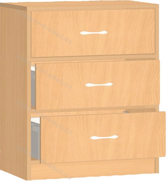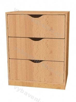 Univerzální dětský nábytek, snadno kombinovatelný. Nízká dřevěná skříňka s třemi zásuvkami. Rozměry: 60x76x45 cm (ŠxVxH).