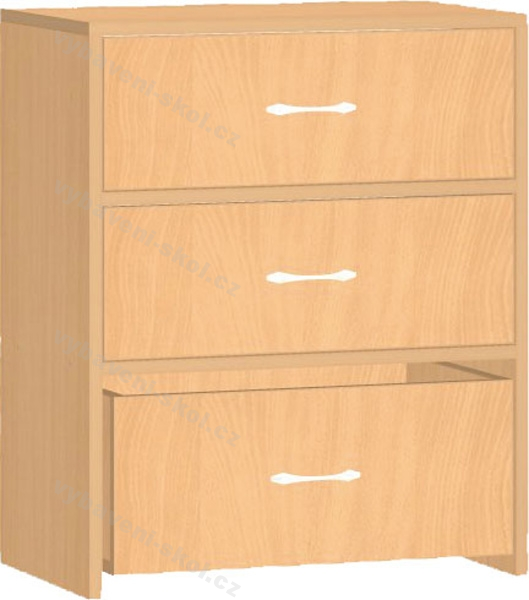 Zásuvková skříňka je praktickým doplňkem dětských nábytkových sestav. Úložný prostor poskytují tři hluboké zásuvky. Korpus skříňky je standardně vyráběn ve dvou dezénech lamino desek o síle 18 mm. Zásuvky jsou v několika barevných provedeních lamino desek o síle 18 mm (barevné spektrum v naší nabídce). Všechny namáhané plochy jsou opatřeny 2mm ABS hranou, která je chrání před poničením a dá se vybrat z několika barevných variant. Na zadní straně skříňky je sololit, na vyžádání pohledová záda za příplatek. (V případě zájmu o pohledová záda napište Váš požadavek do poznámky, cena Vám bude kalkulována). Díky své univerzálnosti ji lze začlenit mezi ostatní dětský nábytek,