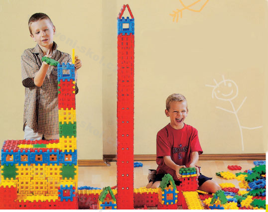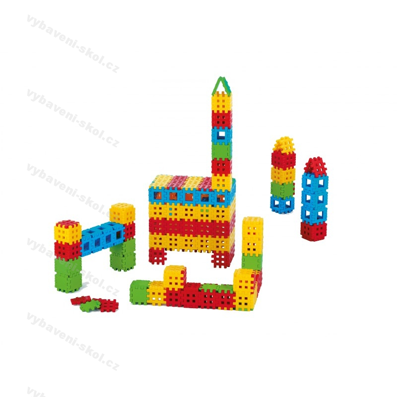 170 stavebnicových dílů velké, konstrukční stavebnice je pro holky a kluky důležitější než svačina nebo prolézačky. S potěšením a po dlouhou dobu se staví městečko, pokojíček, zahradní domeček, autíčka atd. Stavebnice z barevných, odolných plastů je uložena v igelitovém pytli. K dostání také dalších 100 dílů k rozšíření stavebnice. Velikost čtvercových dílů 10x10 cm.