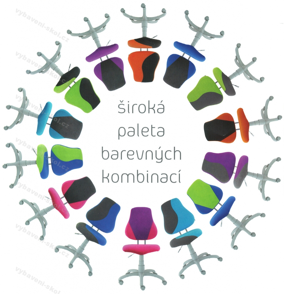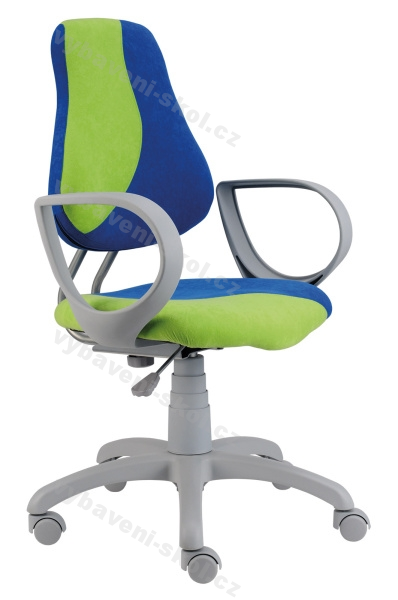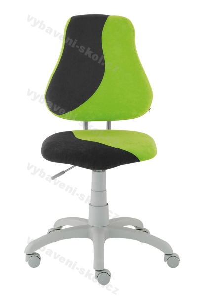 Velmi populární dětská židle na kolečkách pro zdravé a pohodlné sezení. Otočná židle Fuxo vyhovuje malým dětem, mladým teenagerům i studentům. Rostoucí polohu židle zajišťuje posun opěradla od sedadla směrem dozadu a opěradla směrem nahoru, manipulace je jednoduchá a rychlá. Sedák a opěrák židle je anatomicky tvarovaný. Výškové nastavení sedáku je umožněno pomocí značkového plynového pístu. Spodní část židle je vybavená šedým plastovým křížem a kolečky. Maximální zatížení do 100 kg.