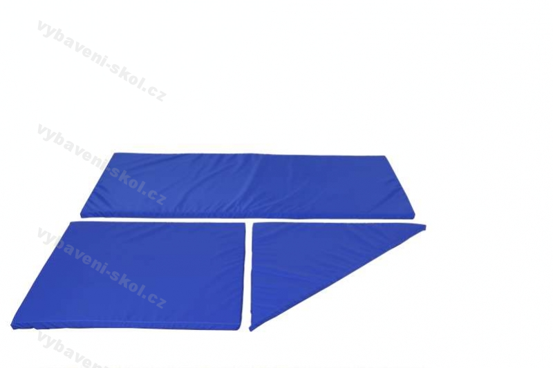 Dětské dopadiště doskočiště tvaru trojúhelníku o rozměru 90x90x3 cm (DxŠxV) vhodné do prostřední mateřských škol. Doskočiště slouží jako žíněnka či jako ochranná dopadová plocha pro děti. Dopadiště je modré barvy. V nabídce máme také tvar dopadiště čtverec a obdélník. Jednotlivé díly dopadiště se k sobě dají jednoduše přichytnout za pomocí suchých zipů na stranách jednotlivých dílů. Vnitřní výplň tvoří recyklovaná polyuretanová pěna s gramáží 80 kg/m3. Vrchní vrstvu tvoří modrá omyvatelná látka RIDANA (100% PAD). Spodní vrstva je tvořena protiskluzovou koženkou s gramáží 240 g/m2.