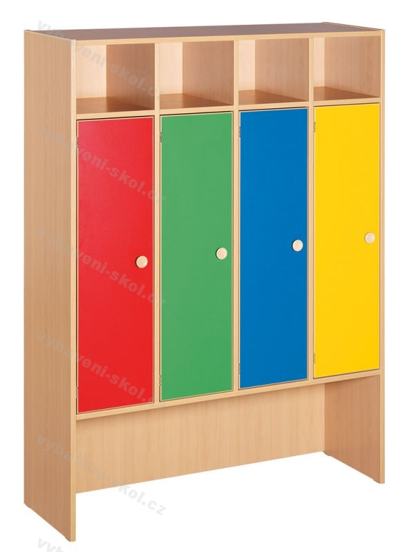 Dětský dřevěný šatní čtyřblok bez zámků. Rozměr: 120x162x40 cm (Š x V x H).