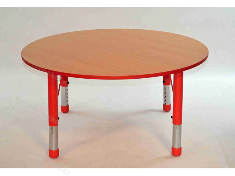 Dětský kulatý stůl, barevné nohy s rektifikací Ø 100 cm, stavitelné nohy v rozsahu 37,5 - 59,5 cm.