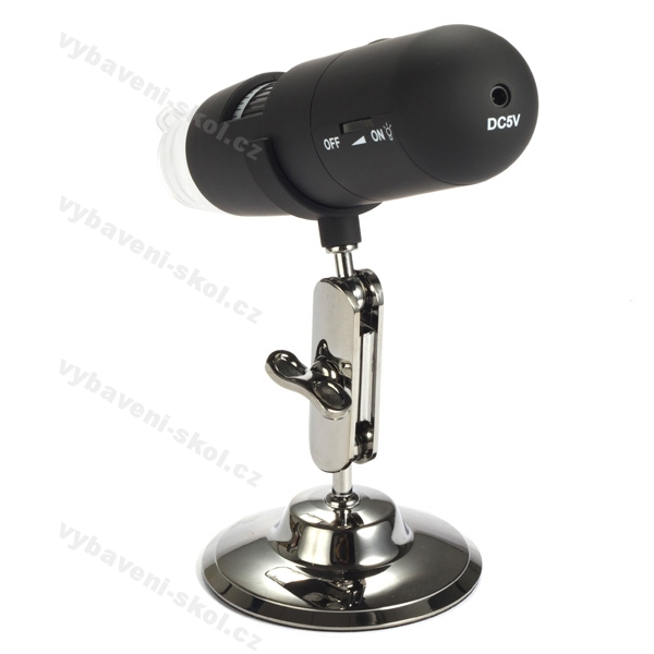 Zvětšení 20x - 230x. Fotoaparát s rozlišením 2 Mpx. Osvětlení zajišťuje osm vestavěných LED žárovek.