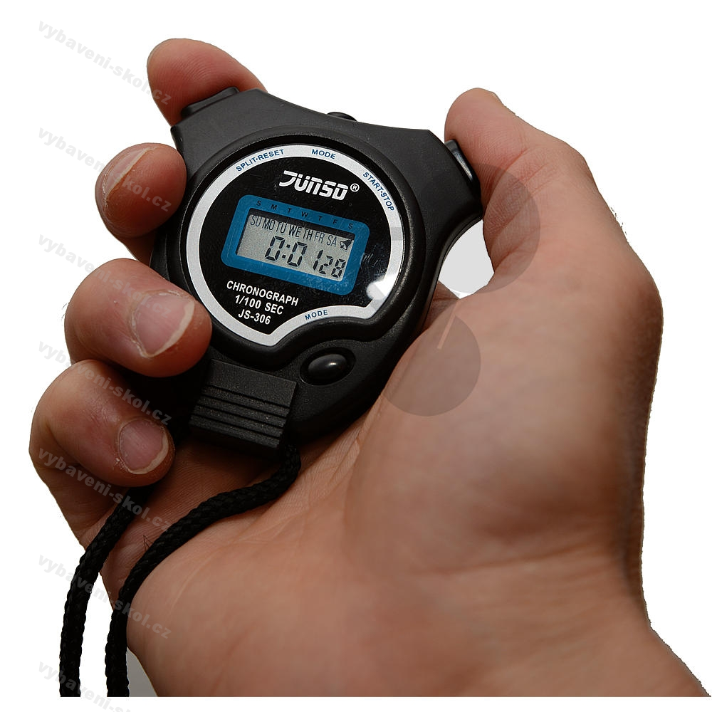 LCD displej 1/100 s až 30 minut, 1 s až 24 hod., mezičasy, možnost zobrazení data a přesného času, funkce alarmu. Pouzdro z odolného ABS plastu.