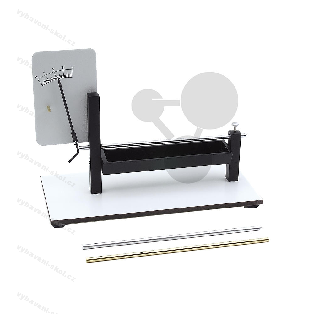 Zkoumaný kov se zahřívá díky hoření lihu v příslušné vaničce. Zkušební tyče jsou na jednom konci upevněny v rámu přístroje. Druhý konec volně prochází otvorem. Délková dilatace se přenáší pákou na stupnici. Dodáváme se 3 tyčemi ze železa, mosazi a hliníku (po 1 ks).