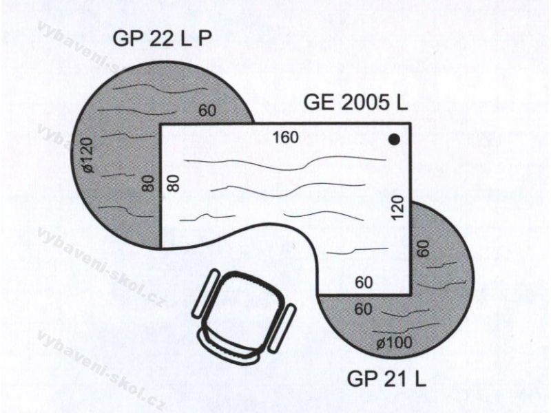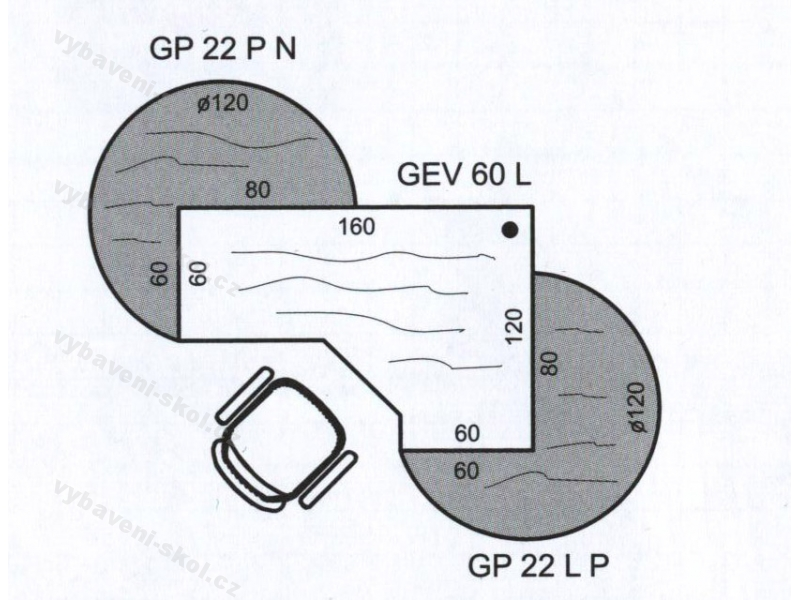 Doplňkový stůl levý Gate GP 22 LN - léta napříč pr.120x75,5x(80x60) cm (ŠxVxH).