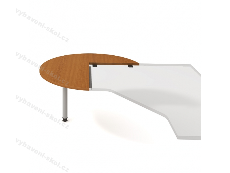 Dlouhodobou životnost doplňkového stolu Cross CP 22 L N zaručuje jeho kvalitní laminové provedení. Směr kresby let napříč. Pracovní deska kruhového tvaru s výřezem o síle 25 mm osazena ochrannou hranou ABS o síle 2 mm, která chrání stůl před mechanickým poškozením. Barevné provedení horní desky dle níže uvedeného vzorníku dekoru dřeva. Stůl obsahuje kovovou nohu, u které je možno vybrat barevné provedení ze vzorníku. Noha je opatřena výškově stavitelnou rektifikací, která pomáhá vyrovnat případné nerovnosti podlah až o 1,5 cm. Díky jednoduchému spojovacímu systému lze stůl kombinovat s jinými nábytkovými prvky. Spojovací systém je automaticky součástí každého prvku.
