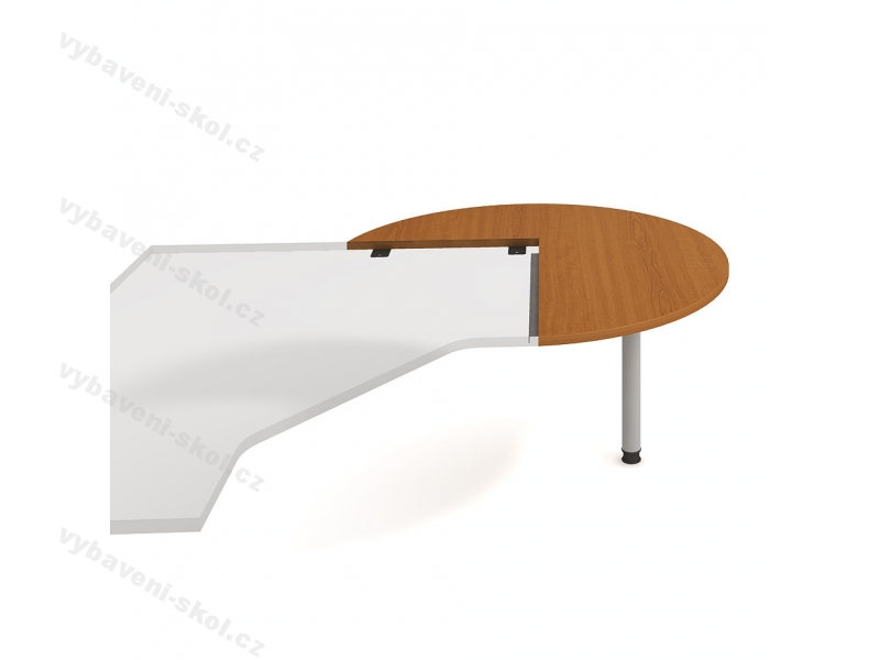 Doplňkový stůl Flex FP 22 P N je vyroben z laminované dřevotřísky (lamina). Pracovní deska kruhového tvaru s výřezem o síle 25 mm osazena ochrannou hranou ABS o síle 2 mm, která chrání stůl před opotřebením či mechanickým poškozením. Směr kresby let napříč. Barevné provedení horní desky dle níže uvedeného vzorníku dekoru dřeva. Stůl obsahuje kovovou nohu, u které je možno vybrat barevné provedení ze vzorníku. Noha je opatřena výškově stavitelnou rektifikací, která pomáhá vyrovnat případné nerovnosti podlah až o 1,5 cm. Při řazení pracovních stolů k sobě nabízí řada FLEX prvky s úsporným systémem tzv. řetězení. Jednoduchý spojovací systém (součástí stolu) umožňuje kombinovat stůl s jinými nábytkovými prvky. Součástí je přehledný návod.