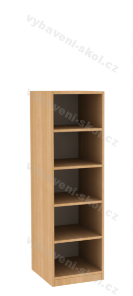 Dětský nábytek rozšiřujeme o kvalitní a účelový nábytek ze dřeva v moderním designu. Dokonale vyhovuje potřebám v dětských domácích i společenských místnostech. Praktický, otevřený, vnitřní prostor skříně umožňuje rychlou a snadnou orientaci v uložených hračkách, knížkách, cvičebních a didaktických pomůckách, relaxačních podložkách atd. Oboustranně laminovaná dřevotřísková deska o síle 18 mm, v dezénu dle naší nabídky, je použitá na výrobu pevné konstrukce a stavitelných polic (každá o nosnosti 30 kg). Všechny používané hrany skříňky chrání odolná 2 mm ABS hrana. Spodní část skříně tvoří 5 cm vysoký sokl. Rozměry 136x40x45 cm (V x Š x H).