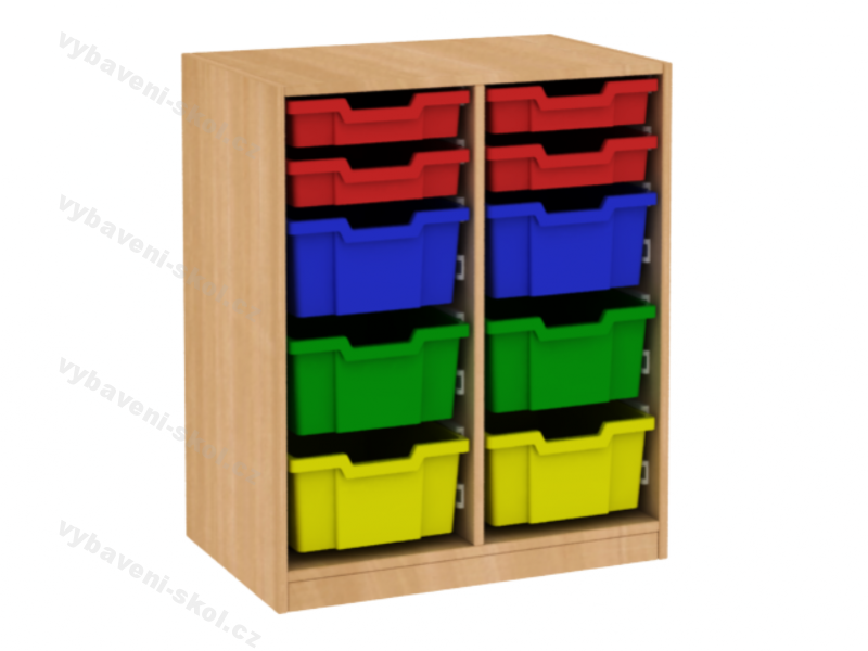 Kvalitní, efektivní a pečlivě zpracovaný nábytek pro děti různého věku reprezentuje nová řada dětských dřevěných skříní. Do praktické, nízké skříňky s barevnými, plastovými boxy si dětské hračky, knížky, oblečení nebo společenské hry, mohou ukládat přímo malé děti. Skříňka je ustavená na 5 cm vysokém soklu. Celá je vyrobená z oboustranně laminované dřevotřískové desky o síle 18 mm, v dezénu z našeho výběru. Všechny namáhané hrany skříňky disponují odolnou ABS hranou. Úložný prostor je vybavený kolejničkami s plastovými boxy (pod kódem 77001003 malé, 77001004 střední). Jedná se o lehký, trvanlivý a nezávadný materiál. Zvolené barvy (průhledná, žlutá, červená, modrá a zelená) rozepište do poznámek. Rozměry 84x70x45 cm (V x Š x H).