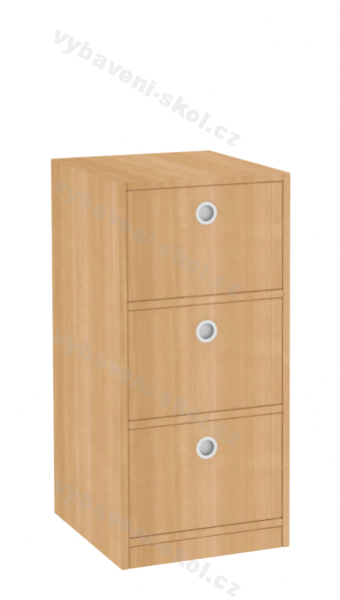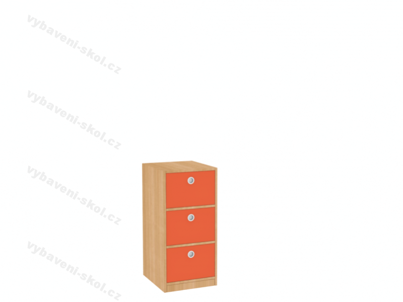 Kvalitní, praktický nábytek s velmi dobře řešeným úložným prostorem poskytuje nová řada nábytku pro děti různého věku. Nízká zásuvková skříňka je ideálním úložným prostorem i pro nejmenší děti. Úzká skříňka je zhotovená z oboustranně laminované dřevotřískové desky o síle 18 mm, odstín dle naší nabídky. Namáhané hrany skříňky mají zvýšenou odolnost díky ochranné 2 mm ABS hraně. Zásuvky mají každá nosnost 30 kg, jsou vybavené kovovými snadno uchopitelnými úchyty (výběr z více druhů), čela zásuvek v několika barvách. Ve volbách možnost uzamykání. Skříňka je umístěná na 5 cm vysokém soklu. Rozměry 84x40x45 cm (V x Š x H).