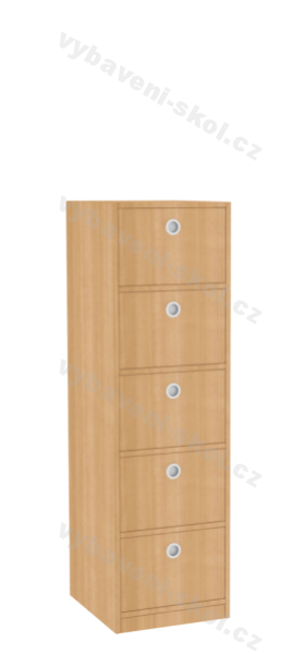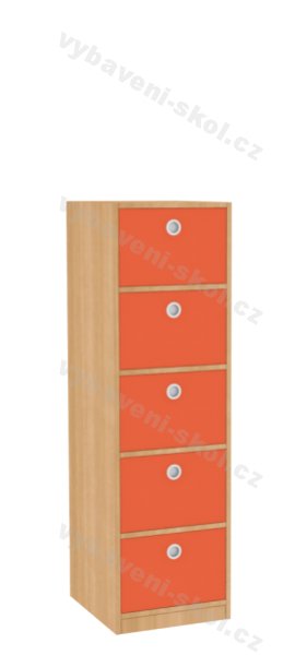 Nová řada dětského nábytku, je navržená ve stylu kvalitního a účelového vybavení pro všechny dětské interiéry. Středně vysoká skříňka reflektuje moderní, čistý design. Uzavřená zásuvková skříň je zhotovená z dřevotřískové desky o síle 18 mm, odstín dle naší nabídky, oboustranně laminované. Nosnost každé zásuvky je 30 kg. Všechny namáhané hrany skříňky jsou opatřené odolnou 2 mm ABS hranou. Spodní část skříně tvoří 5 cm vysoký sokl. Na zásuvkový systém lze namontovat zámek. Čela zásuvek je možné volit v různých barvách, úchyty jsou kovové a snadno uchopitelné (výběr z několika druhů). Rozměry 136x40x45 cm (V x Š x H).