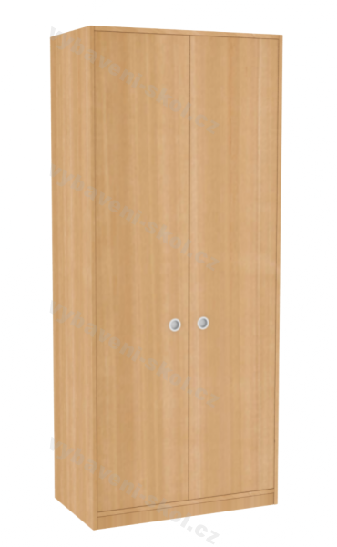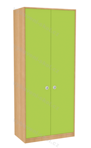 Atraktivní nová řada dřevěných dětských skříní je navržená v módním jednoduchém a čistém designu. Zároveň se klade důraz na kvalitu materiálu a pečlivé provedení. Vysoká skříň disponuje úložným prostorem krytým dvoukřídlými dveřmi. Vnitřní část vyplňují stavitelné široké police, každá o nosnosti 30 kg, pro ukládání dětských hraček, společenských her, cvičebních a didaktických pomůcek, relaxačních podložek a polštářů, oblečení atd. Skříň je zhotovená z oboustranně laminované dřevotřískové desky silné 18 mm, v dezénu přírodní buk. Dveře lze vybírat v několika barvách, jsou opatřené kruhovými kovovými úchyty (v nabídce další druhy). K doplnění zámek. Nejvíce namáhané hrany skříně chrání odolný ABS systém (tloušťka 2 mm). Spodní část skříně tvoří 5 cm vysoký sokl. Rozměry 187,4x80x45 cm (V x Š x H).