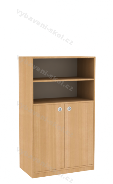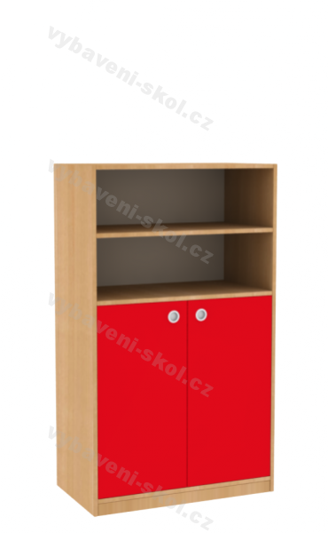 Kvalitní a účelový nábytek vhodný do dětských domácích i společenských interiérů. Široká, středně vysoká skříňka je navržená v jednoduchých, moderních liniích. Horní část tvoří otevřené police, spodní policový systém zakrývají dvoukřídlé dveře. Pro výrobu dětské skříňky je použitá oboustranně laminovaná dřevotřísková deska o síle 18 mm, odstín k výběru z naší nabídky. Stavitelné police mají každá nosnost 30 kg. 2 mm ABS hrana chrání nejvíce zatěžované hrany skříňky. Skříň je ustavená na soklu vysokém 5 cm. Dvířka jsou vybavená kovovými, snadno uchopitelnými úchyty (volba z více druhů). Barvu dveří a zámek vybírejte z možností níže. Rozměry 136x80x45 cm (V x Š x H).