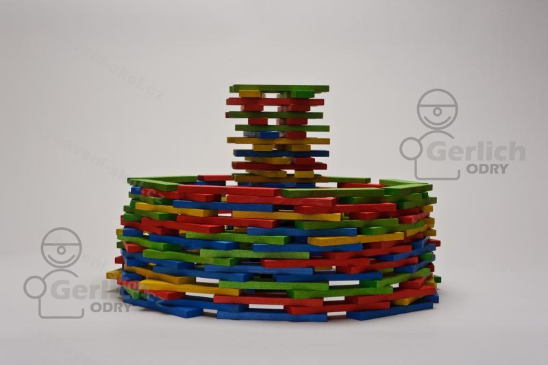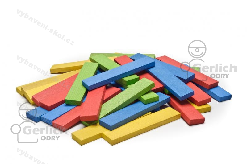 Hranolky různých barev - sada 200 kusů. Velikost hranolků 8 x 24 x 120 mm. Inspirují děti k představivosti a tvořivosti. Koordinace práce rukou a očí. Vyrobeno z bukového dřeva. Výrobek má certifikaci FSC.