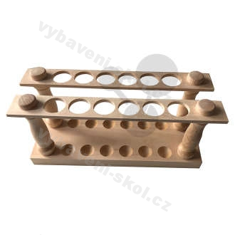 Dřevěný stojan pro 2x6 zkumavek. 229 x 76 x 152 mm. Průměr 20 mm.