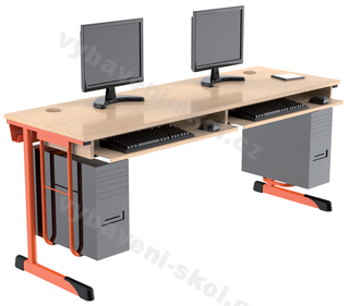 Kovová kostra stolu z plochooválného profilu a okopem nebo plechovým kabelovým kanálem s úpravou žárového komaxitu. Pracovní deska je vyrobena z laminovaného dřevotřískového materiálu o síle 25 mm s ABS hranou opatřena kabelovou průchodkou.
