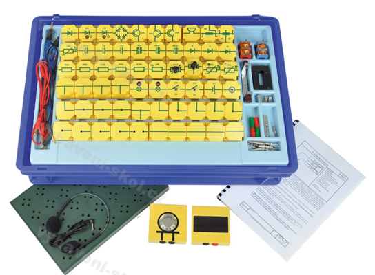 Komplexní sada obsahující komponenty ze sad Elekřina 1 a Elektronika - doplnění (všechny díly v jednom úložném boxu), umožňující vykonávání stejných pokusů jako při sadě Elektronika - doplnění.