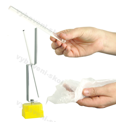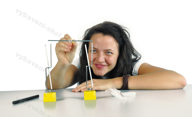 2 x Elektroskop, hliníkový profil s 4 mm kolíkem pro upevnění v izolované podstavě modulu se zdířkou, robustní hliníkový ukazatel, L = 140 mm, na jehle kvůli minimálnímu tření