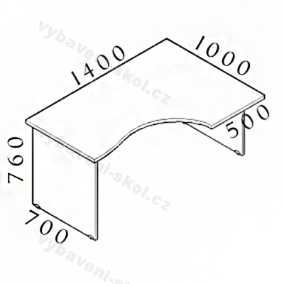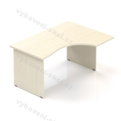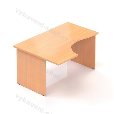 Kancelářský stůl v celodřevěném provedení, vhodný zejména pro kanceláře zaměstnanců, speciální rohový tvar, deska z laminované dřevotřísky o síle 28 mm, nastavitelné nožky, 3 typy dezénů. Levé nebo pravé provedení.