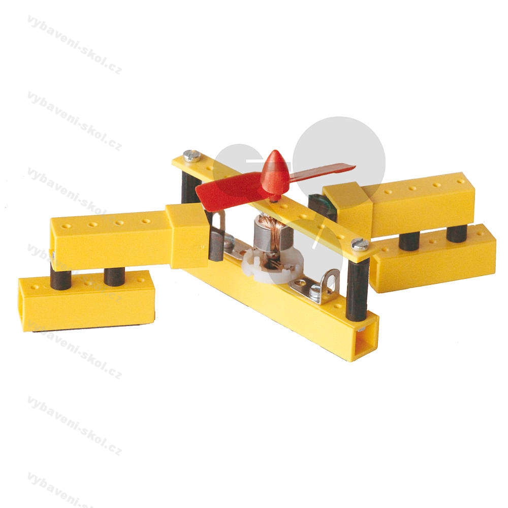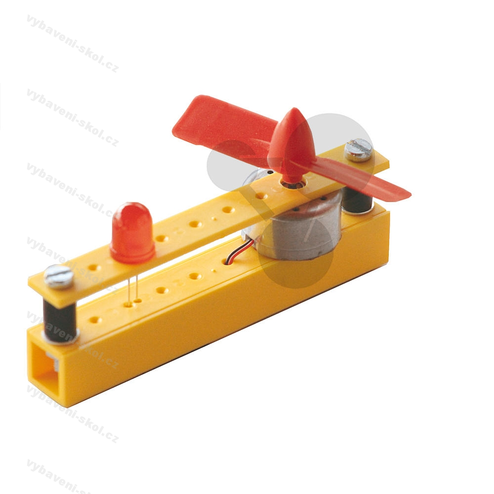 Sestavy s magnetickým uchycením v praktickém plastovém boxu lze prostorově úsporně instalovat a rychle použít. Otevřená konstrukce umožňuje přehledný náhled do principu působení motoru. Dvě části experimentální sady s permanentními magnety vytvoří po zavedení napájecího napětí 4,5 V rotační pohyb. Modul s vrtulí a LED slouží k názorné ukázce výroby napětí. Lze tak působivě vysvětlit princip větrného kola. Silné foukání na vrtuli postačí k rozsvícení světelné diody.