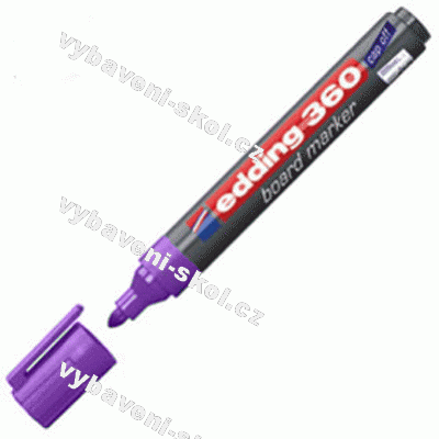 Základní doplněk flipchartu, nástěnky, tabule s bílým povrchem. Popisovací fix fialové barvy je vhodný pro psaní, značení, zvýrazňování hladkých povrchů z materiálu (email, melamin, sklo, ad.). Je dobře viditelný a čitelný, snadno se stírá za sucha, je odolný vůči světlu. Rychleschnoucí popisovač Edding 360 má hrot o průměru 1,5-3 mm, možnost výměny opotřebovaných špiček. Plastový obal obsahuje kvalitní náplň a systém Cap-off zabraňuje vysychání fixu při otevřeném hrotu (i několik dní). Bez přídavku butylacetátu.