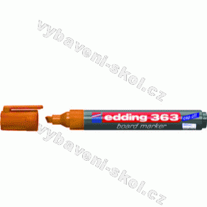 Popisovač Edding 363 oranžové barvy je vhodný pro psaní a značení na bílé tabule. Lze jim psát na téměř všechny povrchy, jako je email, sklo, melamin a jiné. Fix má seříznutý hrot o průměru 1 - 5 mm. Snadno se stírá za sucha, je dobře viditelný a čitelný. Popisovač obsahuje systém Cap-off, díky kterému lze ponechat popisovač otevřený po určitou dobu, aniž by vyschl. Fix je rychleschnoucí a odolný vůči světlu, bez přídavku butylacetátu, inkoust slabého zápachu.