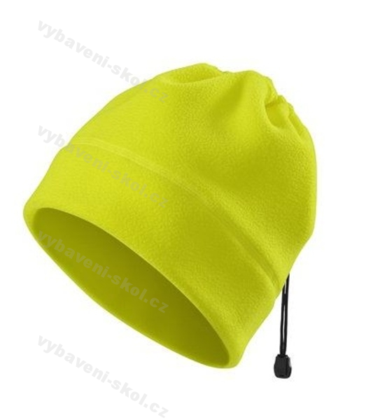Dva v jednom (čepice a nákrčník) ve fluorescenčních barvách. V horní části možnost stažení šňůrkou. Univerzální velikost. Specifikace: Fleece, 100 % polyester.
