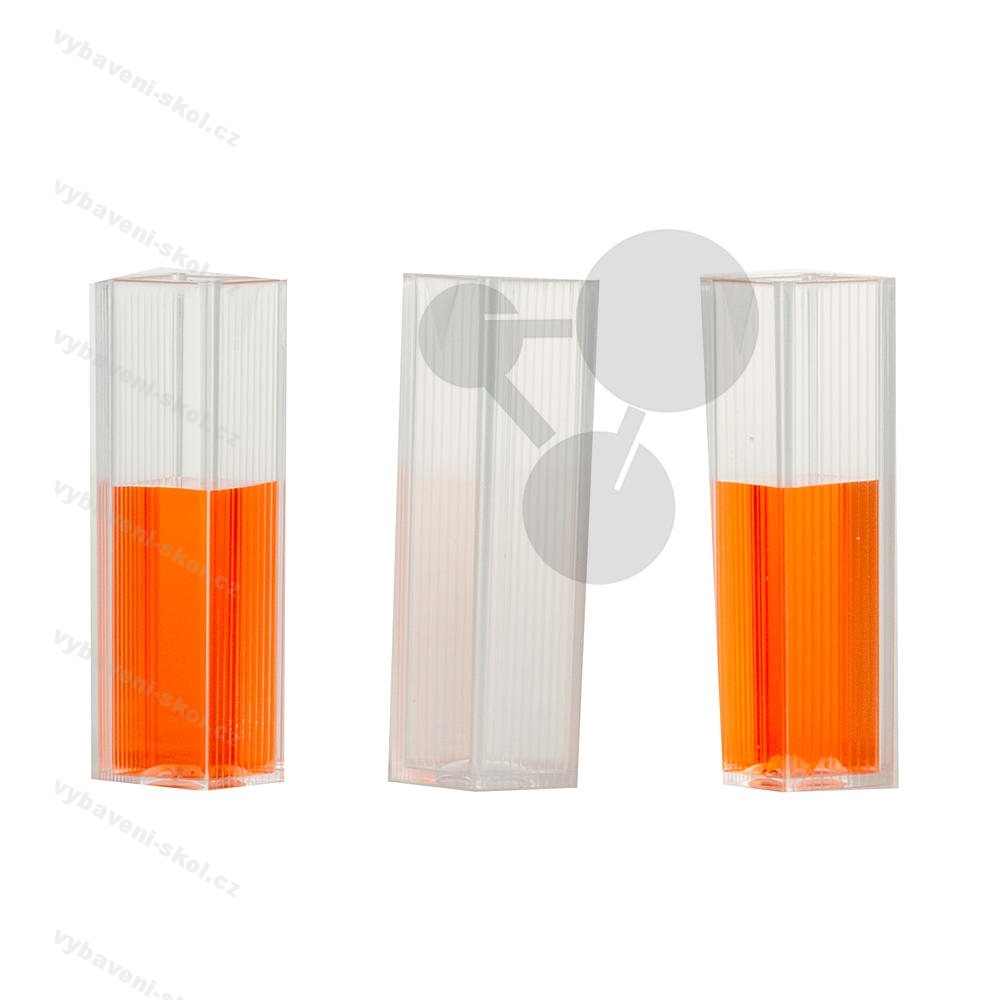 Pro optická měření jako absorpci a extinkci a pro projekci procesů v kapalinách. Kyvety z transparentního polystyrenu, tloušťka vrstvy 10 mm.