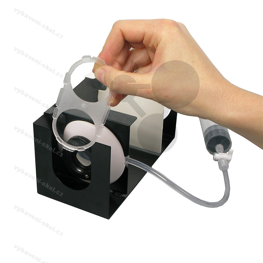 Rozsah dodávky: model oka se silikonovou variabilní čočkou, pomocné čočky pro korekci krátkozrakosti a dalekozrakosti, zobrazovaný předmět.