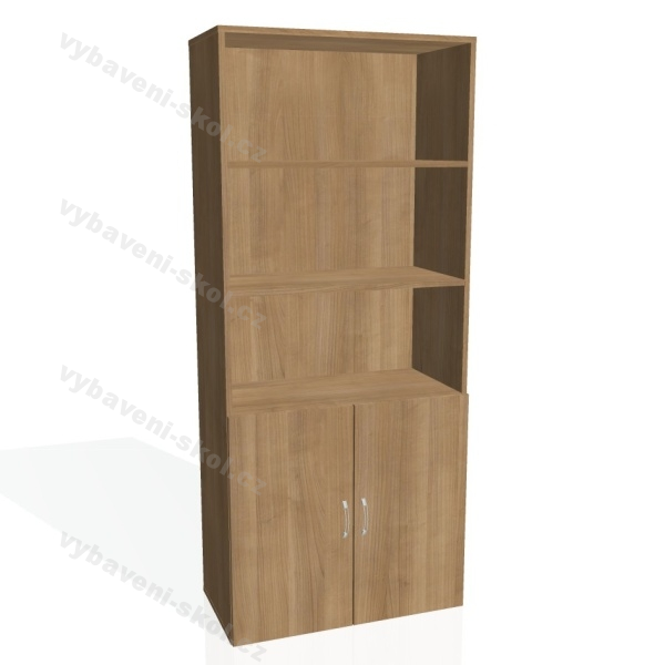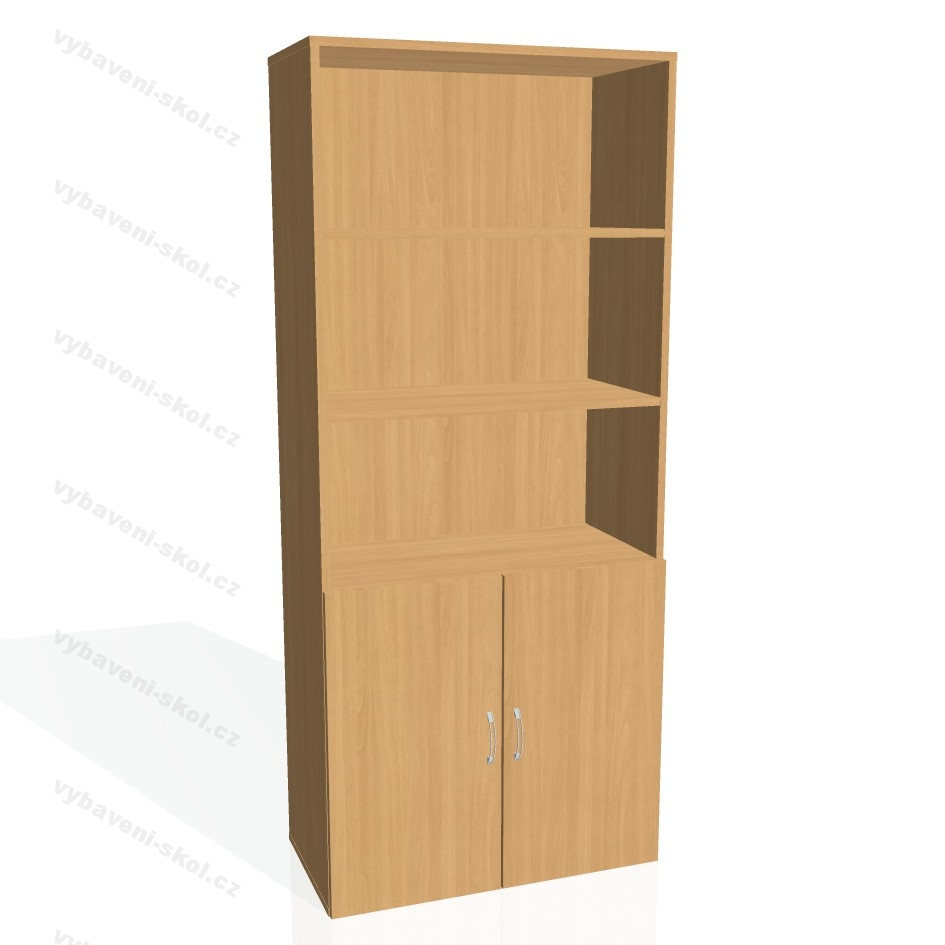 Skříň policová dvéřová (čtyři police a dvířka ve spodní části) D 5 80 03. Rozměr: 80x185x42 cm (ŠxVxH).