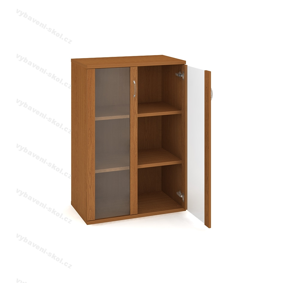 Skříňka dvoudveřová - policová S 3 80 04. Rozměr: 80x115x40 cm (ŠxVxH). Skříň se dvěma policemi a prosklenými dvířky.