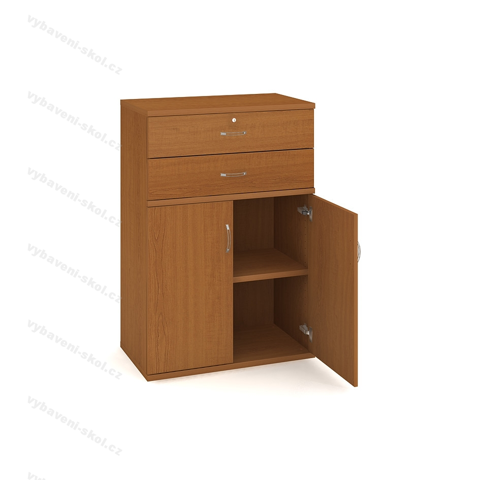 Skříňka dvoudveřová - policová zásuvková SZ 3 80 03. Rozměr: 80x115x40 cm (ŠxVxH). Skříň s dvěma zásuvkami, dvířky a jednou policí.