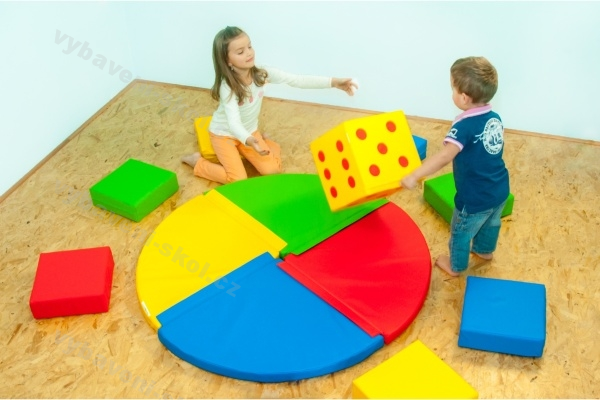 Molitanová kostka určená pro hru a učení. Vyrobeno z pevného molitanu potaženého koženkou. Povrch lze jednoduše otírat.