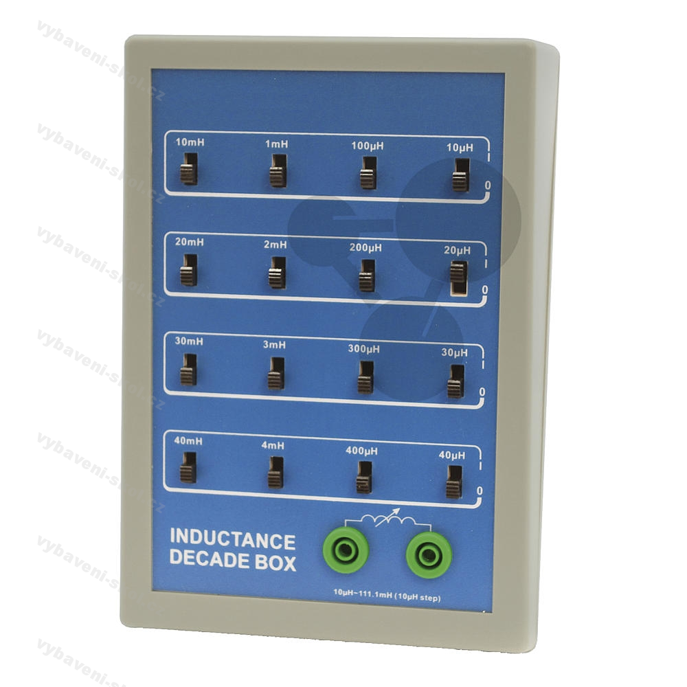 10 µH až 111,1 mH (kroky po 10 µH), ve čtyřech dekádách, přesnost 5 % při 1 kHz, max. vstupní proud 100 mA AC / DC, vnitřní zbytková indukčnost 0,6 µH.