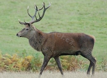 Reálný dermoplastický preparát jelena evropského v reálné pozici.